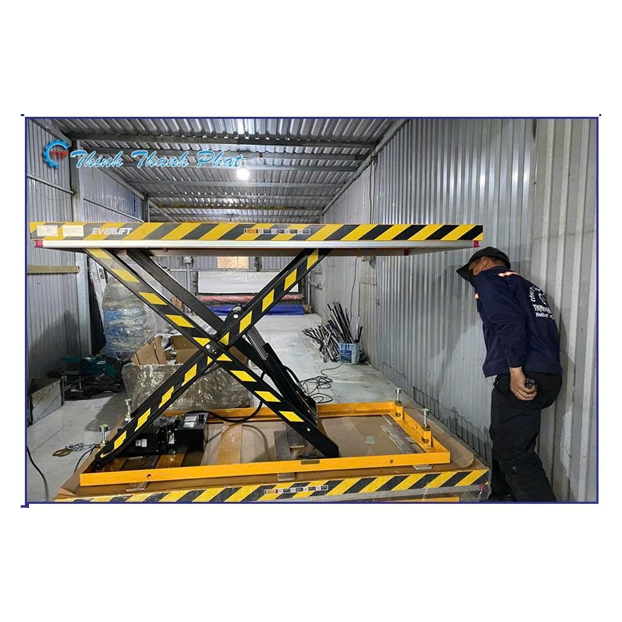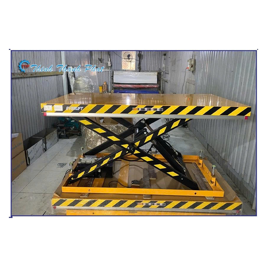 Cơ chế vận hành: Thủy lực điện (Electric Hydraulic). Sử dụng motor bơm dầu để kích hoạt xylanh nâng hạ, giảm thiểu hoàn toàn sức lao động thủ công.