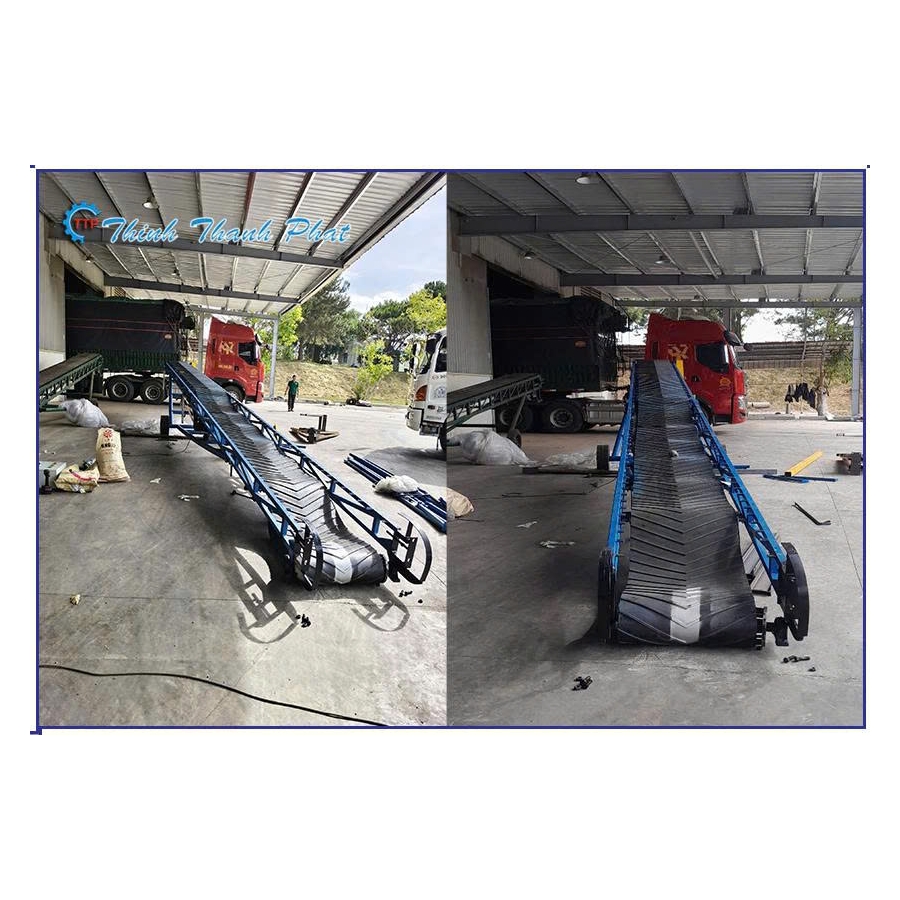 Hệ thống cho phép nâng hạ đầu băng tải bằng thủy lực hoặc tay quay để khớp với độ cao của sàn xe. Hàng hóa từ trong kho được băng tải đưa thẳng vào sâu trong thùng xe, công nhân chỉ cần đón bao và xếp gọn. Quy trình này giúp tăng tốc độ bốc xếp gấp 3 đến 4 lần so với phương pháp truyền thống và giảm thiểu tối đa tình trạng kéo lê gây rách bao, thất thoát nguyên liệu.