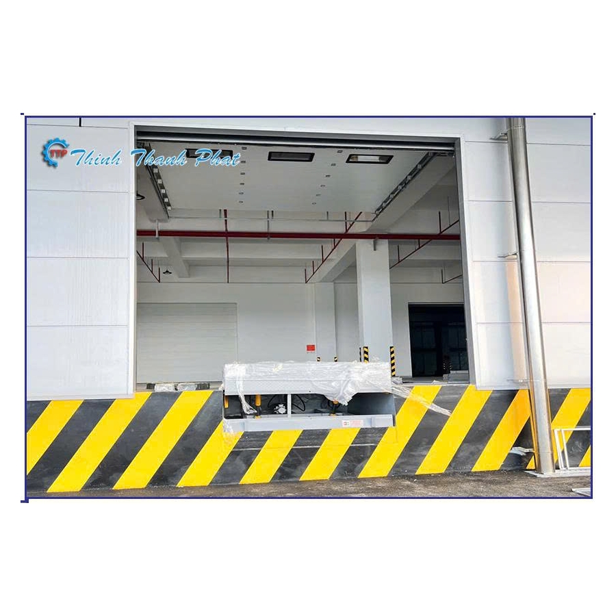 Đối với các kho lạnh bảo quản thực phẩm hoặc dược phẩm, việc duy trì nhiệt độ ổn định là yếu tố sống còn. Sàn nâng thủy lực thường được kết hợp với bộ trùm túi khí (Dock Seal) để tạo thành một hệ thống cửa xuất nhập hàng khép kín. Khi xe container lùi sát vào sàn nâng, hệ thống này sẽ bịt kín khoảng trống giữa xe và cửa kho, ngăn không cho khí lạnh thoát ra ngoài và ngăn chặn bụi bẩn, côn trùng xâm nhập.