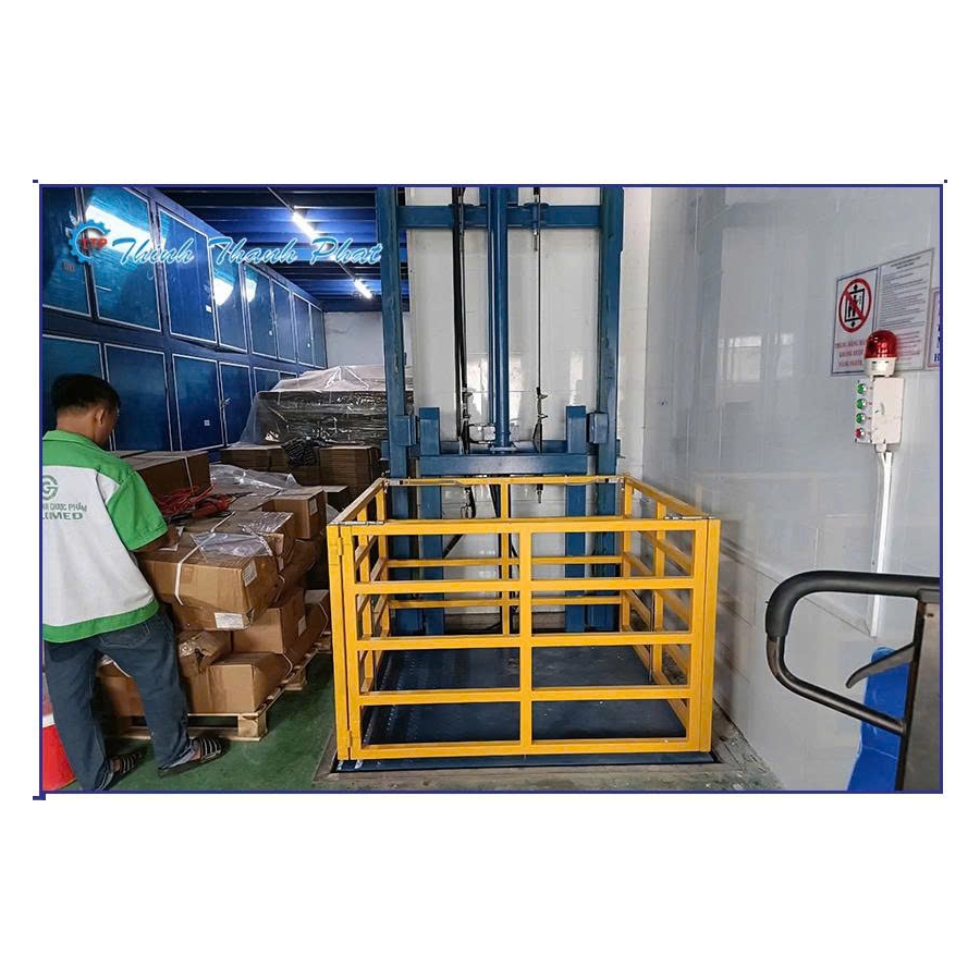 Trong các nhà kho và xưởng sản xuất: Thang được dùng để vận chuyển các linh kiện điện tử, thùng carton chứa hàng may mặc, hoặc các nguyên liệu sản xuất có khối lượng vừa phải. Việc sử dụng thang nâng giúp thay thế sức người trong việc bê vác thủ công lên cầu thang bộ, từ đó giảm thiểu rủi ro tai nạn lao động và tăng năng suất công việc.