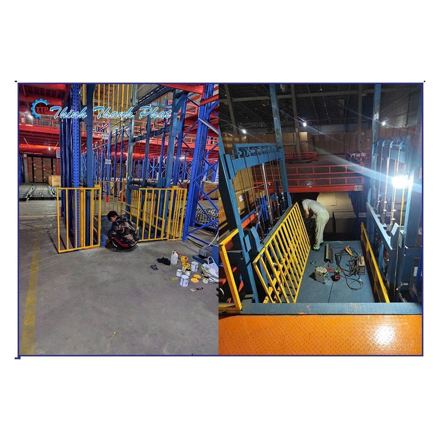 Trong các khu công nghiệp, thang nâng được sử dụng để chuyển các pallet nguyên vật liệu hoặc thành phẩm nặng giữa tầng sản xuất và tầng kho. Khả năng chịu tải 2 tấn cho phép xe nâng tay đưa hàng thẳng vào sàn nâng mà không lo bị sụt áp hay nghiêng sàn.