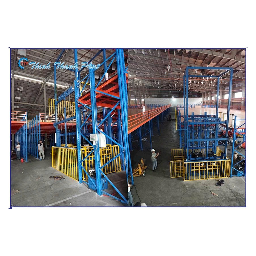 Trong các nhà máy sản xuất công nghiệp nặng: Vận chuyển các pallet nguyên liệu hóa chất, cuộn thép, hoặc khuôn mẫu máy móc nặng giữa xưởng sản xuất và tầng kho lưu trữ.